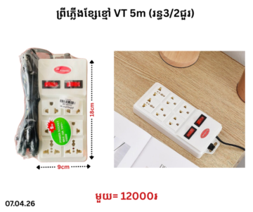 ព្រីភ្លើងខ្សែខ្មៅ VT 5m (រន្ធ3/2ជួរ)