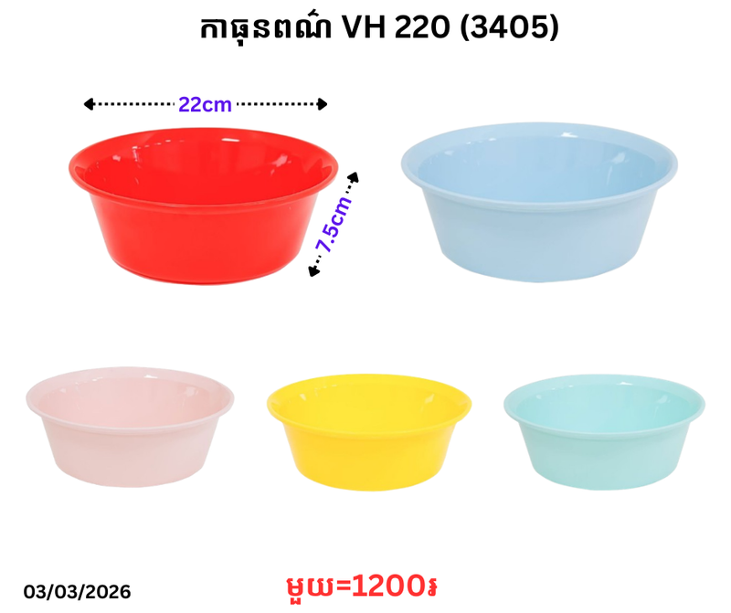 កាធុនពណ៌ VH 220 (3405) March 4, 2026 Posted in 1200, កាធុន, កាធុនពណ៌, កាធុនពណ៌ VH, ទំនិញថ្មី 📦លេខកូដសម្គាល់ទំនិញ🆔 Product ID: 10011363🔣 Barcode / Code: 8935124534051📊 ស្ថានភាពស្តុក៖ មានស្តុក