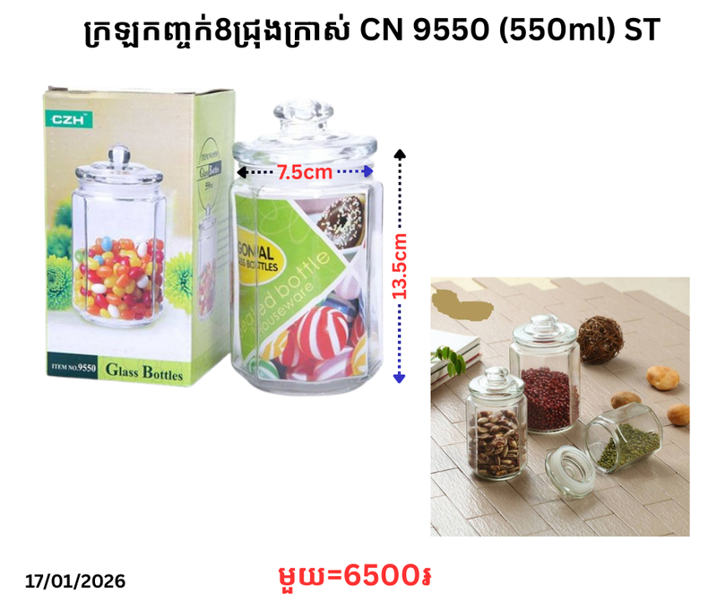 ក្រឡកញ្ចក់8ជ្រុងក្រាស់ CN 9550 (550ml) ST January 22, 2026 Posted in 6500, CN, ក្រឡ, ក្រឡកញ្ចក់, ក្រឡកញ្ចក់8ជ្រុង, ក្រឡកញ្ចក់8ជ្រុងក្រាស់ CN, ទំនិញថ្មី Barcode : 95507 📦លេខកូដសម្គាល់ទំនិញ🆔 Product ID: 9642614🔣 Barcode / Code: 6925643195507📊 ស្ថានភាពស្តុក៖ ជិតអស់ស្តុក