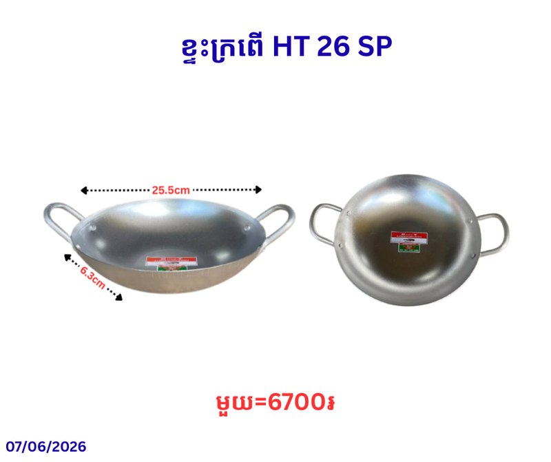 ខ្ទះក្រពើ HT 26 SP November 24, 2025 Posted in 6700, HT, ខ្ទះក្រពើ, ខ្ទះក្រពើ HT, ខ្ទះឆា Product Code : P0008613 📦លេខកូដសម្គាល់ទំនិញ🆔 Product ID: 9170422🔣 Barcode / Code: P0008613📊 ស្ថានភាពស្តុក៖ ជិតអស់ស្តុក