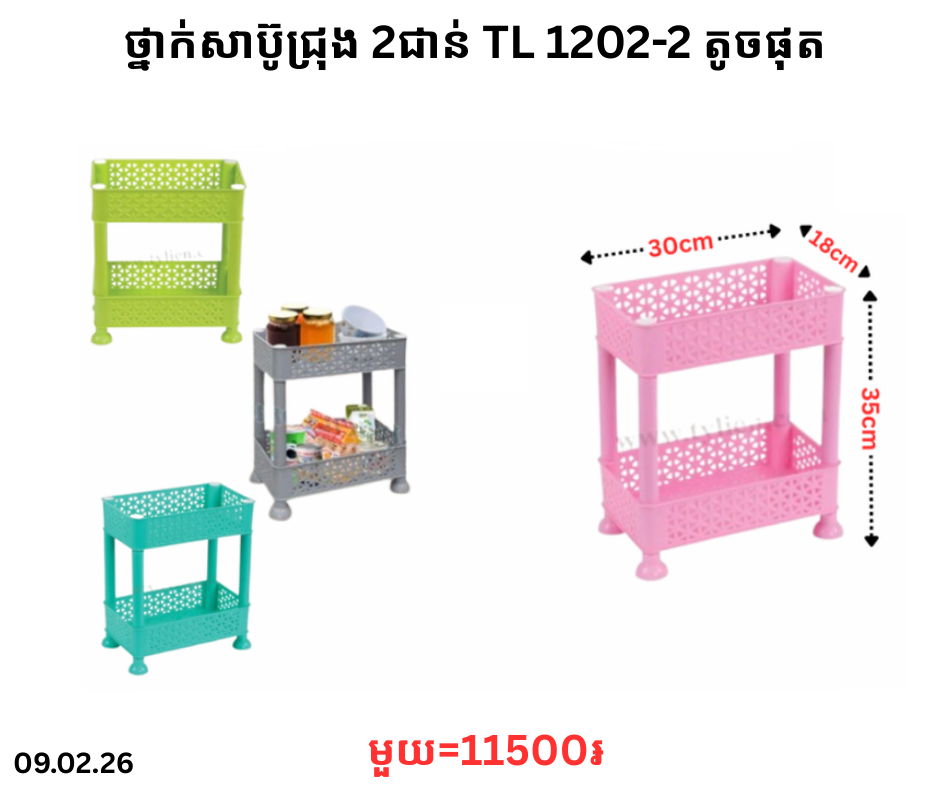 ថ្នាក់សាប៊ូជ្រុង 2ជាន់ TL 1202-2 តូចផុត December 23, 2025 Posted in 11500, TL, ថ្នាក់សាប៊ូ, ថ្នាក់សាប៊ូ TL, ថ្នាក់សាប៊ូជ្រុង Barcode : 8936082381657 📦លេខកូដសម្គាល់ទំនិញ🆔 Product ID: 8515343🔣 Barcode / Code: 8936082381657📊 ស្ថានភាពស្តុក៖ ជិតអស់ស្តុក