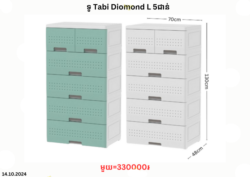 ទូ Tabi Diomond L 5ជាន់ November 8, 2025 Posted in 330000, DT, ទូ, ទូ Tabi Diomond, ទូខោអាវ 📦លេខកូដសម្គាល់ទំនិញ 🆔 Product ID: 4263224 🔣 Barcode / Code: P0006998 📊 ស្ថានភាពស្តុក៖ ជិតអស់ស្តុក