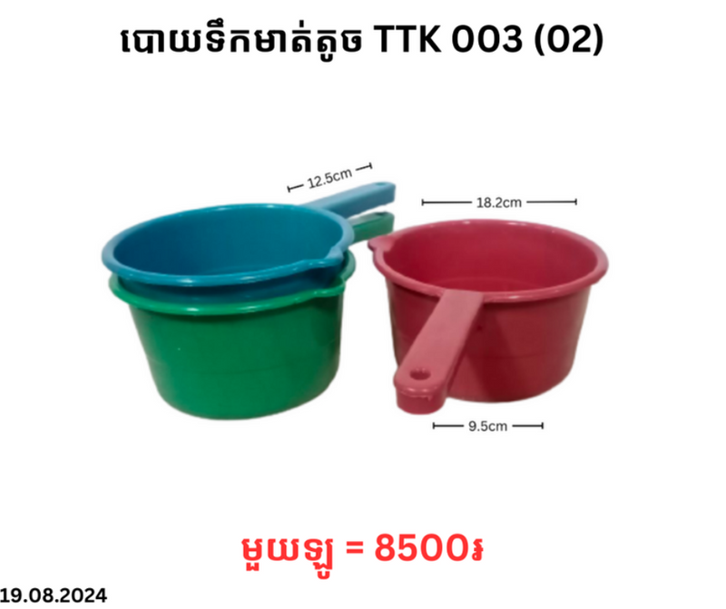 បោយទឹកមាត់តូច TTK 003 (02) December 23, 2025 Posted in 8500, TTK, បោយទឹក, បោយទឹក TTK, បោយទឹកមាត់តូច 📦លេខកូដសម្គាល់ទំនិញ 🆔 Product ID: 3330543 🔣 Barcode / Code: P0006755 📊 ស្ថានភាពស្តុក៖ ជិតអស់ស្តុក