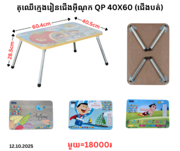តុឈើក្មេងរៀនជើងជ័រ QP 40×60 (ជើងបត់)