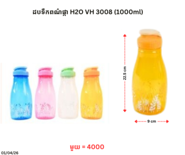 ដបទឹកពណ៌ផ្កា H2O VH 3008 (1000ml)